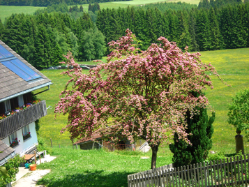 Ferienwohnung(links) Ferienwohnung Blumen im Garten Blumen im Garten Blick vom Wohnzimmerbalkon junges Zicklein Frau Faller im Garten